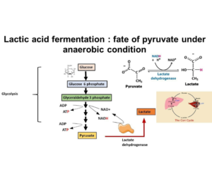 - Under anaerobic conditions, glucose (via pyruvate) is converted into lactic acid to produce cellular energy.